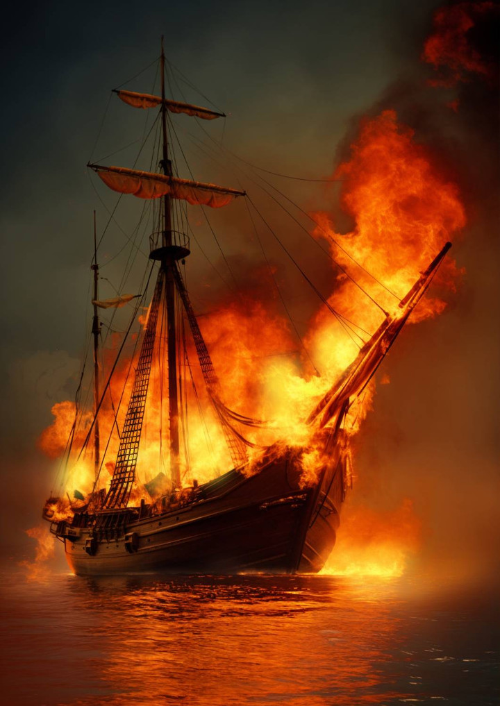 Bagi mereka, kapal ini lebih baik lenyap daripada terus terombang-ambing tanpa arah. Lebih baik terbakar habis daripada menjadi lambang kepalsuan yang tak pernah membawa mereka pada tujuan.