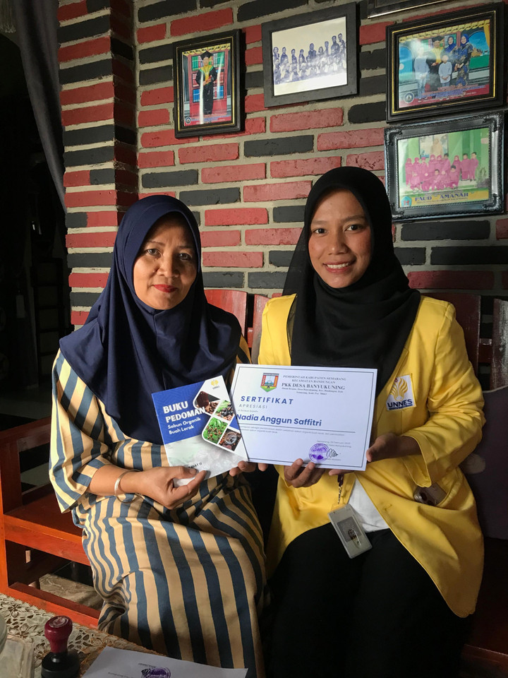 Nadia Anggun Saffitri merupakan mahasiswa dari Universitas Negeri Semarang (UNNES) berhasil menggelar kegiatan pengabdian kepada masyarakat melalui program Bhakti Akademisi di Desa Banyukuning, dalam upaya menjalankan peran aktif Perguruan Tinggi dalam menyelesaikan permasalahan sosial dan lingkungan. Kegiatan ini berfokus pada pelatihan dan pembuatan buku panduan sabun organik berbahan dasar buah lerak, yang sekaligus bertujuan mengurangi limbah alami dan secara khusus menyasar ibu-ibu PKK Desa Banyukuning agar mereka dapat memanfaatkan sumber daya alam yang tersedia untuk kebutuhan sehari-hari maupun peluang usaha kecil. Program ini dikemas dalam bentuk workshop dengan produk berupa buku panduan langkah-langkah pembuatan sabun organik berbahan dasar buah lerak.