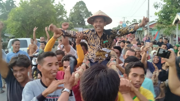 Warga ramai-ramai mengarak Juanha, usai terpilih menjadi kepala desa di Gampong Blang Dalam, Aceh Barat Daya. #publisherstoryACEHKINI
