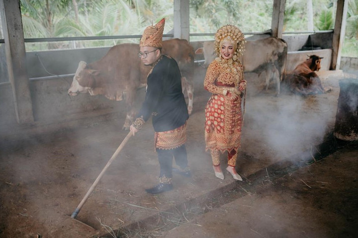 Pemotretan pengantin baru biasanya sering dilakukan di tempat indah seperti objek wisata. Namun ada yang berbeda dengan pasangan Zahlul Pasha dan Nora Ernita di Kabupaten Bireuen, Aceh. Mereka mengabadikan momen sakralnya di kandang ternak: bebek dan sapi.