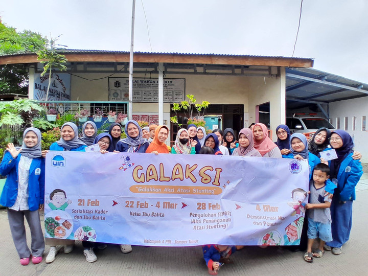Kelurahan Semper Timur, Cilincing- Mahasiswa Program Studi Kesehatan Masyarakat UIN Jakarta melaksanakan kegiatan penyuluhan SIPASI (Aksi Penyuluhan Atasi Stunting). (Rabu, 28/2/2024). Kegiatan ini merupakan rangkaian dari program GALAKSI (Galakkan Aksi Atasi Stunting) yang dicanangkan oleh Mahasiswa/i kelompok 4 PBL Cilincing guna mengatasi permasalahan Stunting dengan meningkatkan ilmu pengetahuan bagi ibu-ibu yang memiliki balita stunting dan juga ibu-ibu kader Posyandu RW 10 Kelurahan Semper Timur.