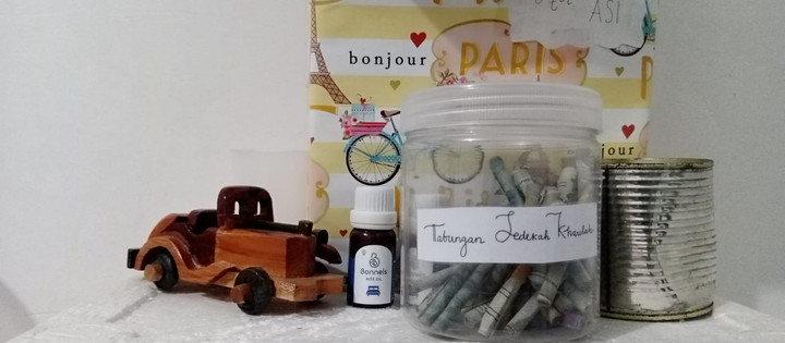 Saya menonton tayangan mengenai kebaikan artis yang sedang diberitakan di infotaiment itu, merasa terinspirasi dengan celengan tersebut. Karena selama ini berat buat saya menggelontorkan uang dengan jumlah banyak untuk bersedekah, sebab kebutuhan rumah tangga yang cukup menguras semua gaji pasangan. Saya menjadi kepikiran untuk menabung juga. Kebetulan anak saya masih di bawah dua tahun, jadi treatment seperti artis itu tidak bisa saya tiru. Jadi saya memutuskan untuk menabung di celengan atas nama anak. Setiap ada uang pecahan dua ribu, saya masukkan ke dalam celengan. Nantinya kalau sudah penuh, hasil tabungan itu akan saya gunakan untuk bersedekah. Saya menyebutknya celengan sedekah, dan berharap dengan menabung sedikit demi sedikit sama halnya dengan menimbun berkah. Menabung bukan hanya untuk diri sendiri, tetapi juga untuk berbagi.