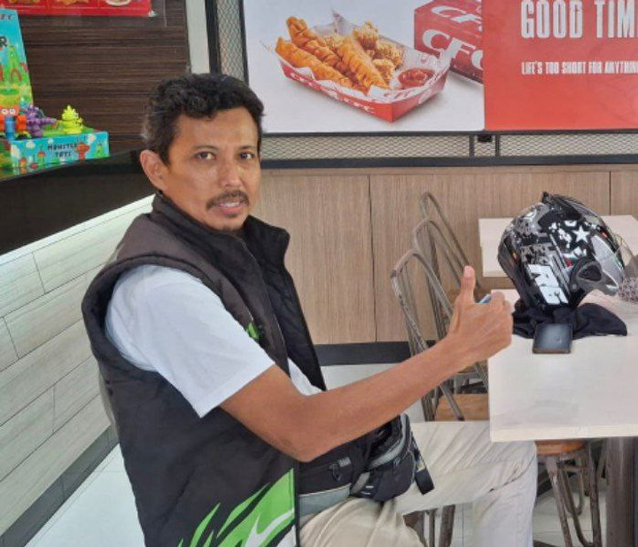 Bapak satu anak ini sudah mengaspal sejak 2018. Sebelumnya, ia bekerja di toko baju di Pangandaran. Usai toko itu tutup, ia banting setir menjadi ojol. Hasilnya ia pakai menyekolahkan anak satu-satunya hingga ke SMK Farmasi.