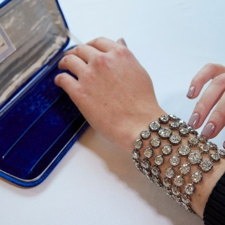 Ini adalah pertama kalinya gelang-gelang tersebut, yang bertakhtakan 112 berlian, dilelang.