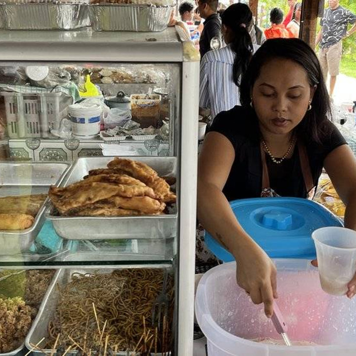 "Senang saya berjualan di sini. Saya berjualan nasi, bami, babat, sayap ayam goreng, saoto," kata Eijke, warga Paramaribo, kepada wartawan BBC News Indonesia, Mohamad Susilo.