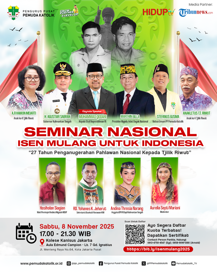 Pemuda Katolik gelar Seminar Nasional “Isen Mulang untuk Indonesia” di Jakarta, menghadirkan tokoh nasional dan keluarga Pahlawan Tjilik Riwut untuk menyalakan semangat kebangsaan dari nilai DayakBerita Sampit