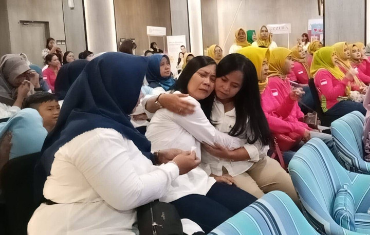 "Tidak mudah ya, tapi kami saling menguatkan satu sama lain. Kami harus bisa kuat demi anak-anak," tutur Ninda dengan suara terbata menahan tangis.