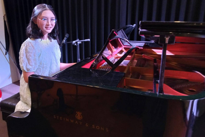 "Jadi konsepnya memang full band dan aku performance main piano," imbuh pelajar berusia 15 tahun ini.