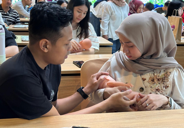 Dalam program ini, peserta tidak hanya belajar teori, tetapi juga praktik langsung seperti cara menggendong, memandikan bayi, memastikan sleep safety, hingga memahami tanda bahaya pada newborn.