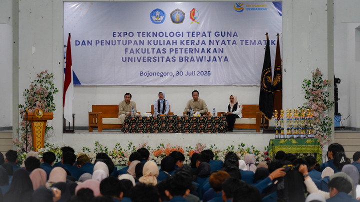 Bojonegoro - Wakil Bupati Bojonegoro, Nurul Azizah, hadiri penutupan Kuliah Kerja Nyata (KKN) Fakultas Peternakan Universitas Brawijaya (UB) Malang, yang gelar di GOR Dolokgede, Kecamatan Tambakrejo, Kabupaten Bojonegoro. Rabu (30/07/2025).