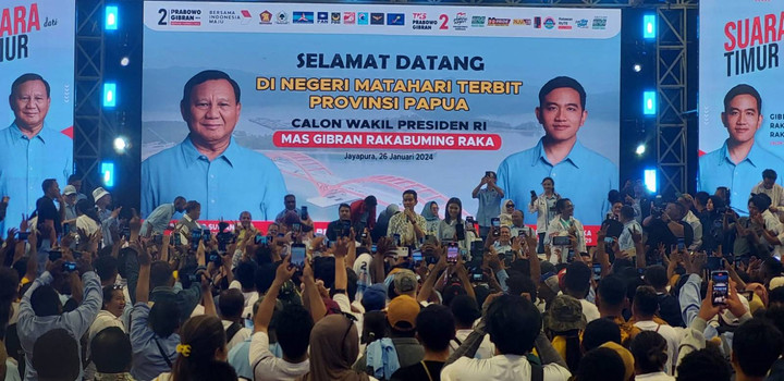 βKita bukan bicara masalah kemenangan, kita bicara masalah masa depan Papua ke depan. Pemerataannya seperti apa? SDM-nya seperti apa? Termasuk keterlibatan anak muda Papua untuk menuju Indonesia emas,β kata Gibran yang ditemani sang istrinya, Selvi Ananda.