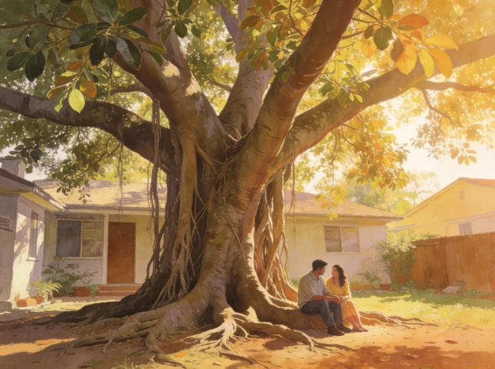 Jawabanku pelan, “Masih. Bahkan lebih besar.” Ia mengangkat alis, jadi aku lanjut, “Cintaku pada istriku… seperti pohon beringin.”