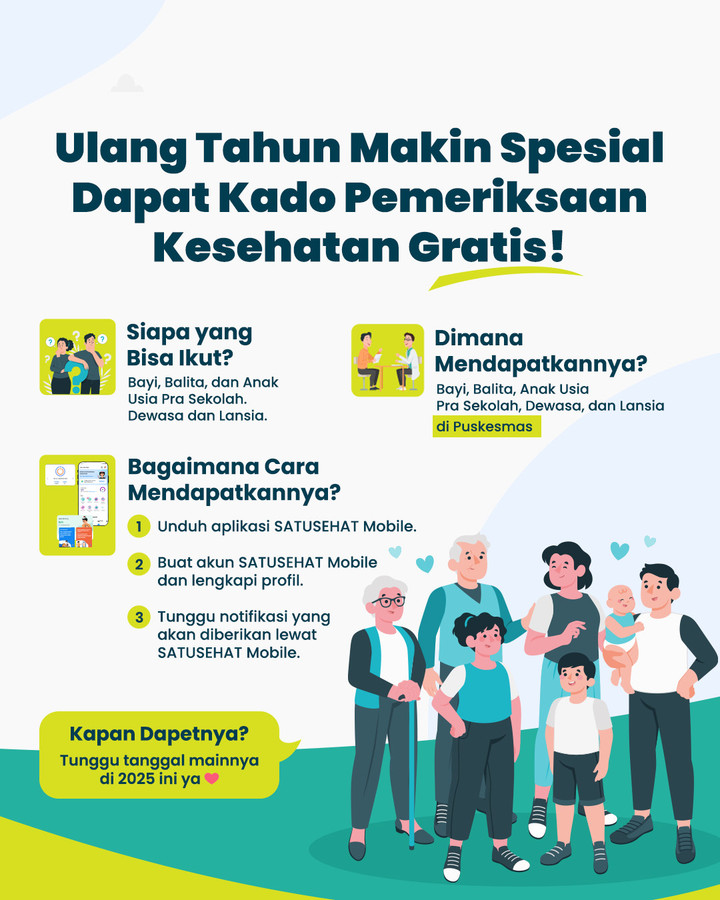 Peran serta masyarakat menjadi sangat penting. Program ini memberi kesempatan untuk menjaga kesehatan Anda dan keluarga. Manfaatkan secara optimal. Karena sehat itu mudah, sehat itu gratis!