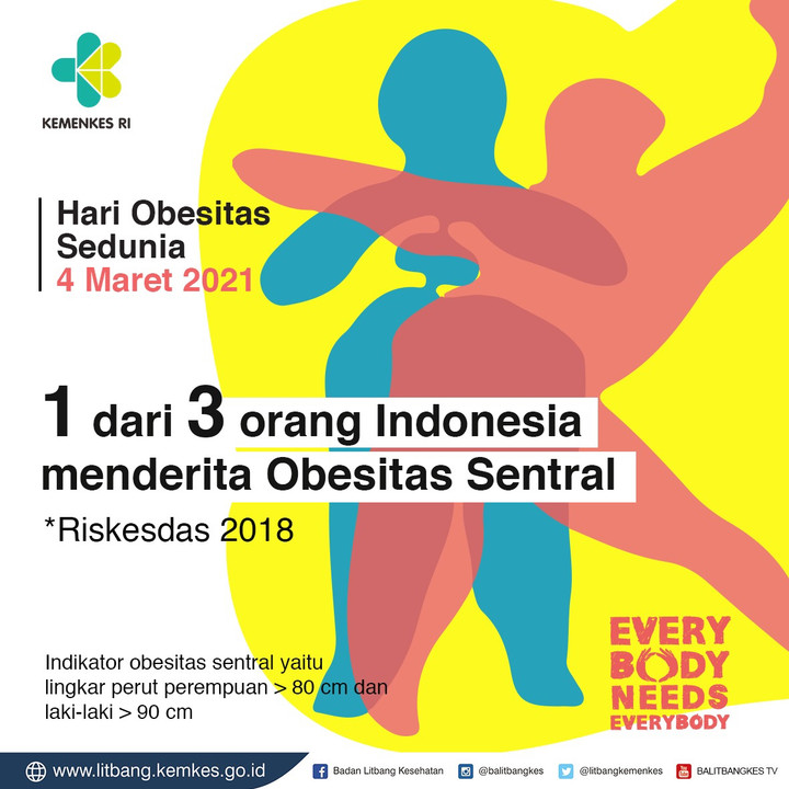Baru saja kita memperingati Hari Obesitas Sedunia. Tepatnya 4 Maret 2021, lembaga World Obesity Day memperingatinya dengan mendeklarasikan ajakan "Every Body Needs Everybody" yang diterjemahkan sebagai "setiap tubuh membutuhkan setiap orang". Ajakan ini sebagai upaya mengatasi epidemi obesitas global. Diharapkan setiap orang bekerja sama demi kehidupan yang lebih bahagia, lebih sehat, dan lebih lama untuk semua orang.