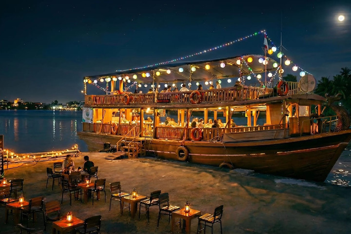 Kamu bisa duduk manis di bangku taman, menikmati semilir angin malam yang sejuknya pas, nggak overpower kayak mantanmu dulu. Pemandangannya? Perahu-perahu kecil alias ‘klotok’ yang hilir mudik dengan lampu hias unik di atas air, seolah mereka juga tahu kalau malam-malam begini harus tampil aesthetic.
