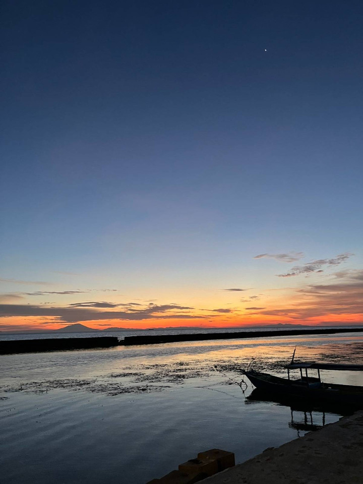 Langit barat tampak berubah-ubah warna, merah merona, jingga memesona, dan taburan warna yang tidak pernah kami temui di Jakarta. Kami berlima tidak bosan mencari beragam posisi untuk memotret setiap detailnya. Apalagi si sulung sedang senang-senangnya mengambil gambar dan video.