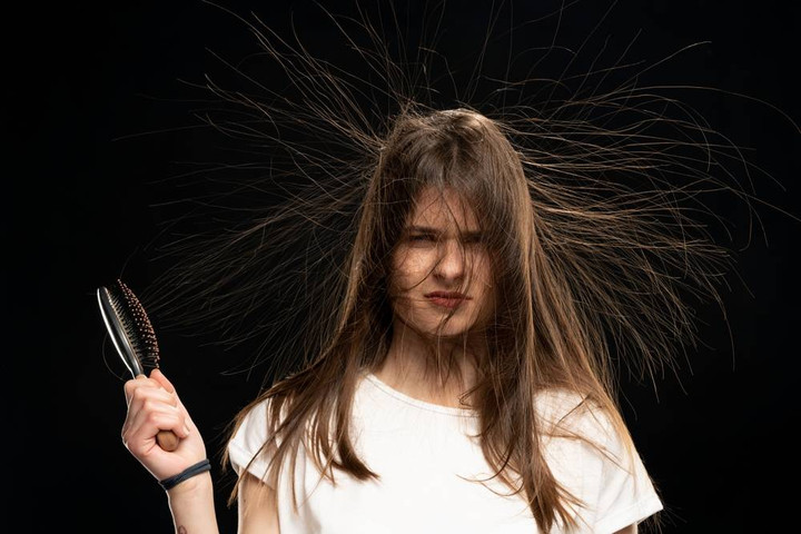 Rambut yang Berdiri Ketika Disisir: Saat Anda menyisir rambut kering, sisir menggesek rambut dan menyebabkan transfer elektron dari rambut ke sisir atau sebaliknya. Ini menciptakan muatan yang menyebabkan rambut saling tolak menolak dan berdiri.
