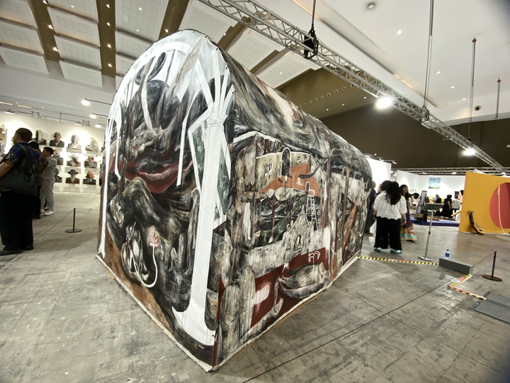Maka di booth ini kita bisa melihat apropriasi jenaka Uji Handoko terhadap citra-citra kanonik sejarah seni rupa, spekulasi kosmologis Natasha Tontey yang berakar pada tradisi Minahasa, hingga refleksi ekologis Syaiful Aulia Garibaldi pada organisme pengurai yang sering terabaikan. Masing-masing karya menyingkap bagaimana masa lalu dan masa kini saling berlipat.