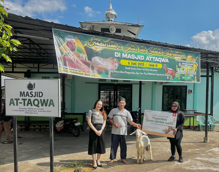 Hi!Pontianak - Momentum Hari Raya Idul Adha 1446 Hijriah disambut dengan penuh suka cita oleh umat Islam di seluruh penjuru dunia, termasuk keluarga besar Astra Motor Kalimantan Barat selaku Main Dealer sepeda motor Honda wilayah Kalbar turut merayakan hari yang penuh berkat ini dengan menyerahkan hewan kurban ke masjid-masjid di sekitar kantor wilayah Main Dealer.