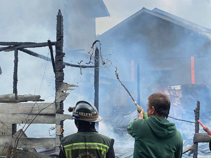 โKejadiannya sekitar jam 09.30, pemilik rumah lagi pada keluar, ngantar anak sekolah. Ini dari rumah kayu dulu apinya, langsung nyambar ke rumah yang di sebelah. Di rumah kayu ini ada menyimpan alat-alat kuda lumping, kan anggota biasa main kuda lumping dari sini. Tapi sudah hangus terbakar, padahal nanti hari Jumat mau ada acara, main kuda lumping juga,โ jelas Dompit, warga sekitar.