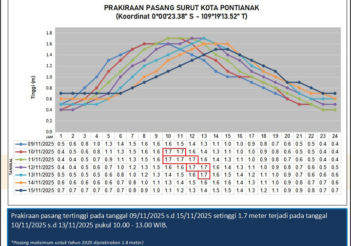 "Besok dan lusa masih berpotensi tinggi pasang air lautnya," kata pihak BMKG Kalbar melalui akun Instagram @bmkg_kalbar pada Minggu, 9 November 2025.
