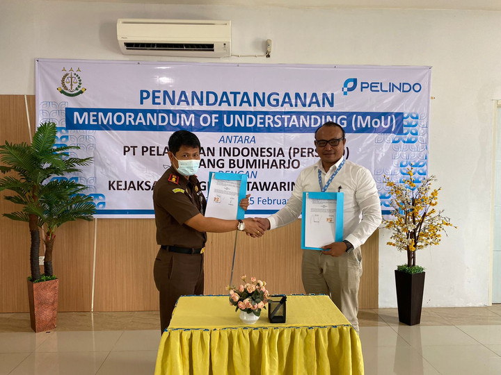 Penandatanganan MoU ini dilaksanakan langsung oleh Kepala Kejaksaan Negeri Kobar Makrun dengan General Manager PT Pelindo III Cabang Bumiharjo, Kumai, Rio Dwi Santoso Penandatanganan ini juga merupakan perpanjangan atas MoU sebelumnya yang telah berakhir pada bulan November 2021.