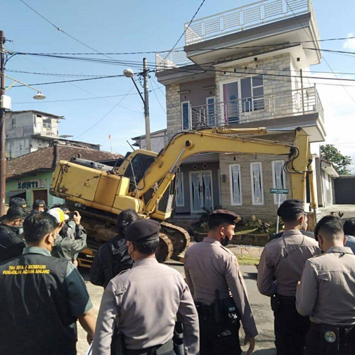 Kota Batu - Sebuah homestay mewah di Jalan Kenanga RT 2 RW 6 Desa Oro-oro Ombo, Kecamatan Batu, disita Pengadilan Agama (PA) Malang. Penyitaan tersebut menghebohkan warga setempat yang terkejut dengan deruan alat berat di lokasi, Selasa (28/6/2022).