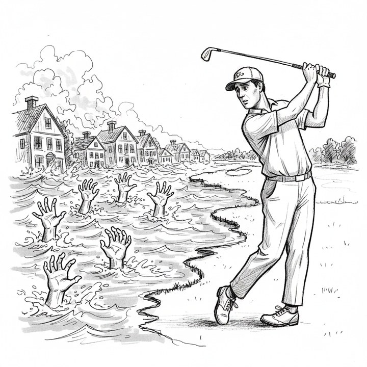 Golf akan tetap dimainkan. Lapangan hijau akan terus dirawat. Bencana pun, sayangnya, akan terus datang. Yang menjadi soal bukanlah olahraga atau donasi, melainkan jarak. Jarak antara yang memegang stik dan yang kehilangan rumah. Jarak antara dunia yang bisa ditata dan dunia yang runtuh sewaktu-waktu.