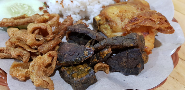 Hal yang membuat semakin 'syuurga' adalah harganya yang sangat terjangkau, wal! Bayangkan saja, satu porsi nasi putih dengan kombinasi kulit, ayam dan paru goreng hanya 25 RIBU RUPIAH SAJA!