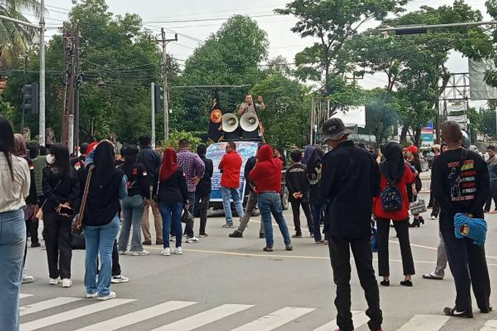 DPRD Sulawesi Tenggara (Sultra) digeruduk oleh massa aksi yang tergabung dalam Rakyat Sultra Bersatu (RSB), pada Selasa (3/12). Massa mendesak untuk memanggil Badan Keamanan Laut (Bakamla) RI terkait penahanan kapal tongkang di wilayah perairan Sultra yang diduga tak sesuai standar operasional (SOP).