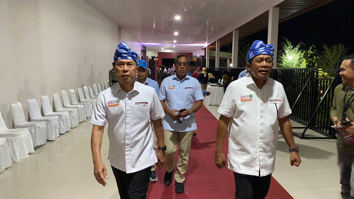Paslon Gubernur Sulawesi Tenggara (Sultra) nomor urut 2, Andi Sumangerukka (ASR) - Hugua pasangan pertama yang hadir di lokasi debat cagub gubernur, di Nirwana Buton Vila Baubau, pada Sabtu (19/10).