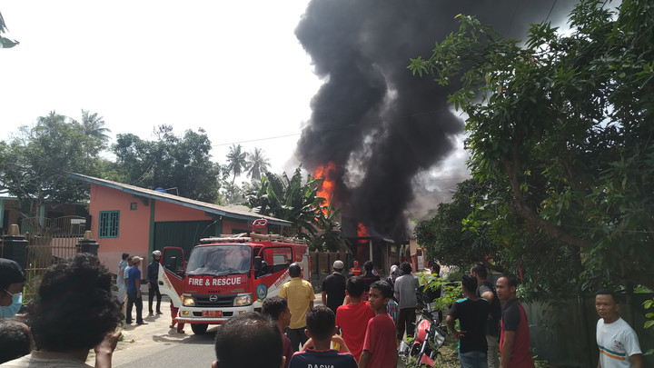 Kebakaran terjadi di salah salah satu tempat pengisisan bahan bakar Mini atau POM mini di Kampung Harapan, Kelurahan Harjosari, Kecamatan Tebing, Kabupaten Karimun, Kepulauan Riau, Rabu (1/7) sekira pukul 13.35 WIB.