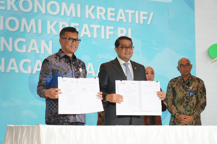 BPJS Ketenagakerjaan dan Kementerian Ekonomi Kreatif (Kemenekraf) Indonesia resmi tanda tangani nota kesepahaman terkait perlindungan jaminan sosial ketenagakerjaan dan pengembangan ekonomi kreatif bagi penggiat ekonomi kreatif di seluruh Indonesia.
