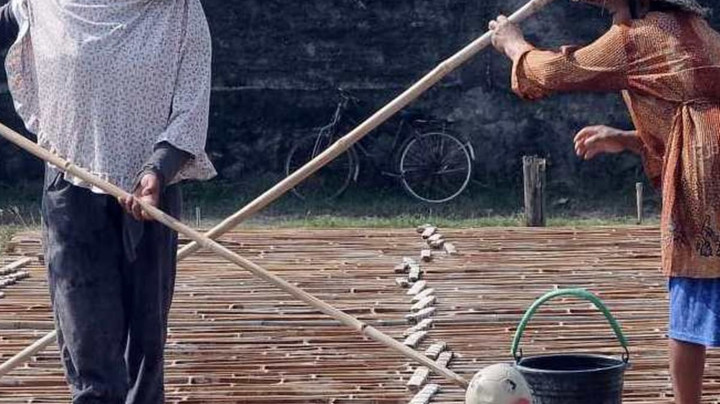 Bilahan bambu yang sudah berisi air itu dijemur di bawah terik matahari hingga mengkristal berbentuk garam yang siap dipanen. Proses pembentukan garam tersebut membutuhkan waktu 10 hari saat cuaca panas dan 15 hari saat cuaca mendung.