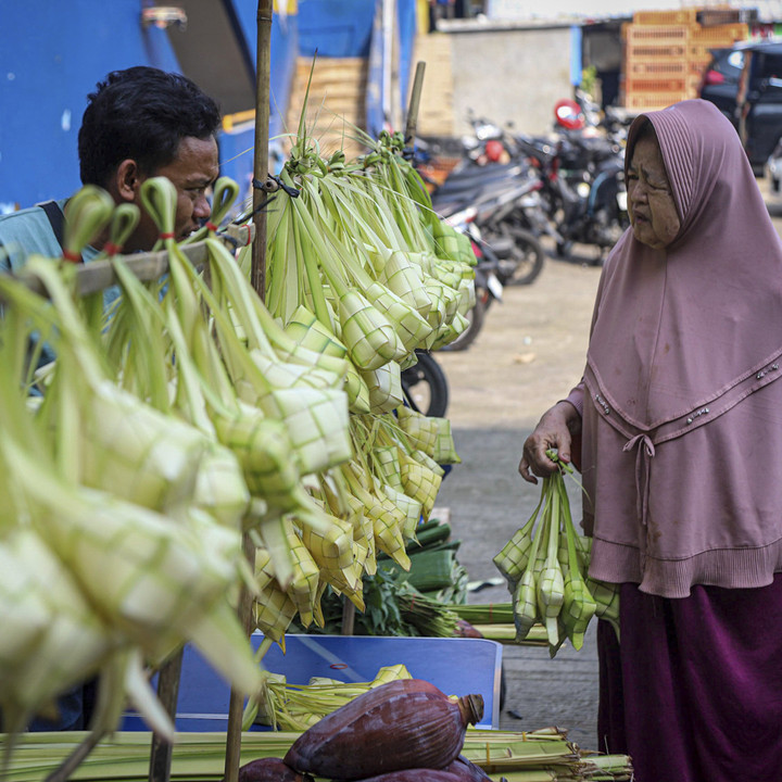 Mereka mendadak berjualan kulit ketupat. Para pedagang datang mulai dari Serang, Banten hingga Bekasi berlomba meraih cuan ekstra dengan berdagang kulit ketupat.