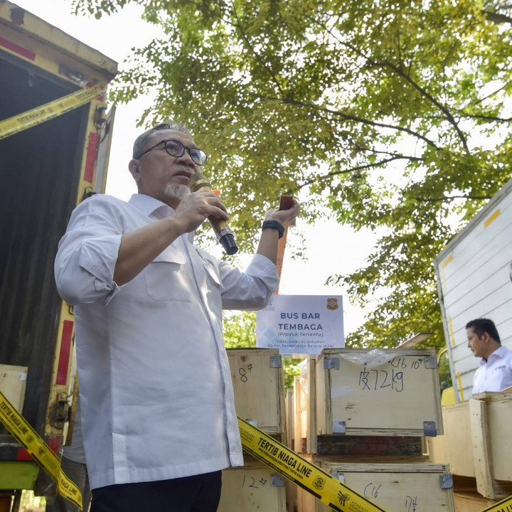 Kementerian Perdagangan (Kemendag) yang dipimpin langsung oleh Menteri Perdagangan RI, Zulkifli Hasan dan Direktorat Jenderal Perlindungan Konsumen dan Tertib Niaga (PKTN) memusnahkan barang impor, Bateng, Jawa Barat, Jumat (8/6).