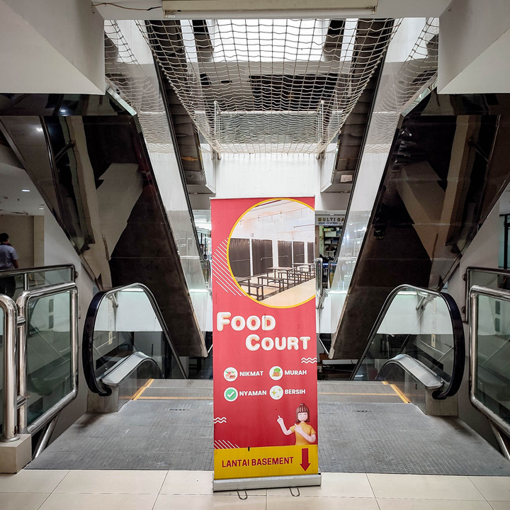 Selain kondisi yang sepi, fasilitas di pusat perbelanjaan itu juga tidak berfungsi, seperti eskalator dan atap-atap juga bolong.