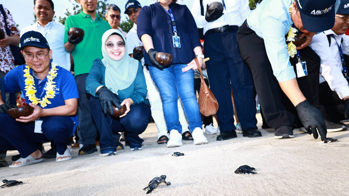 Kunjungi Konservasi Penyu, Pertamina Ajak Delegasi ASCOPE Melepas Tukik
