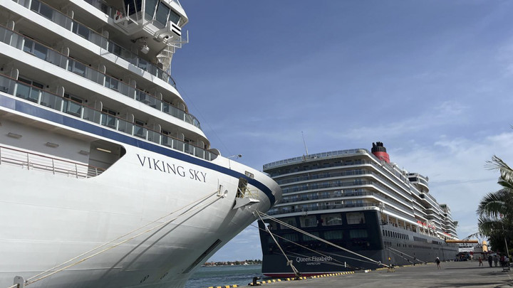 Kemudian, Queen Elizabeth memiliki panjang 293 meter dengan 2.927 penumpang serta kru, sementara Viking Sky dengan panjang 228 meter membawa 1.311 penumpang dan kru.