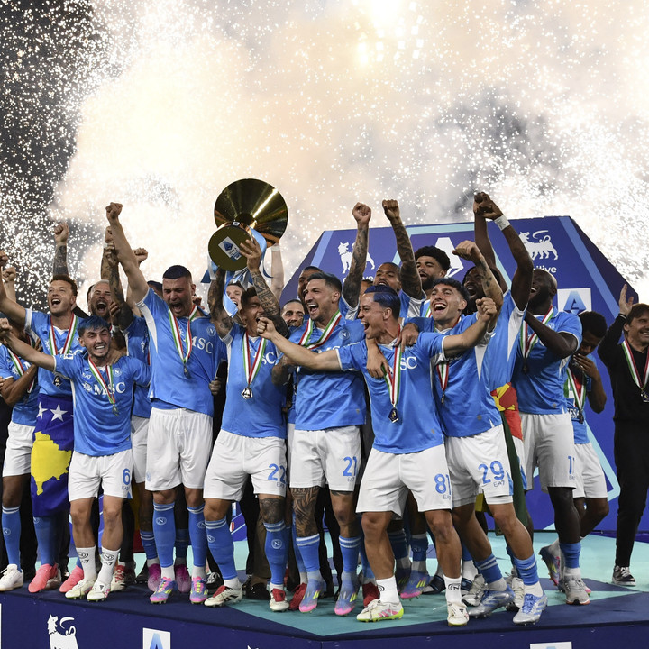 Tampak para pemain, pelatih, ofisial, serta para suporter berselerabsi merayakan gelar Scudetto keempat Napoli. Sebelumnya, mereka bisa meraih pada musim 1986/87, 1989/90, dan 2022/23.