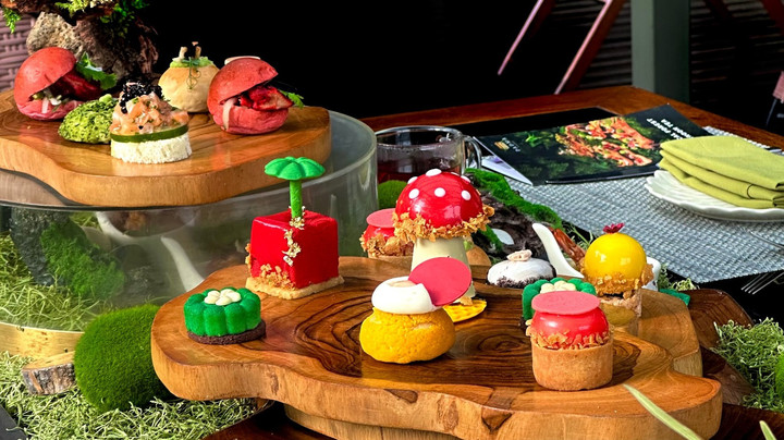 Bersiaplah masuk ke negeri dongeng, karena afternoon tea di Padma Resort Legian mengusung tema Tropical Forest. Setiap menu disajikan layaknya karya seni: jamur payung merah merona, kelopak bunga yang bisa dimakan, hingga tumbuhan-tumbuhan tropis yang menyerupai latar Alice in Wonderland.
