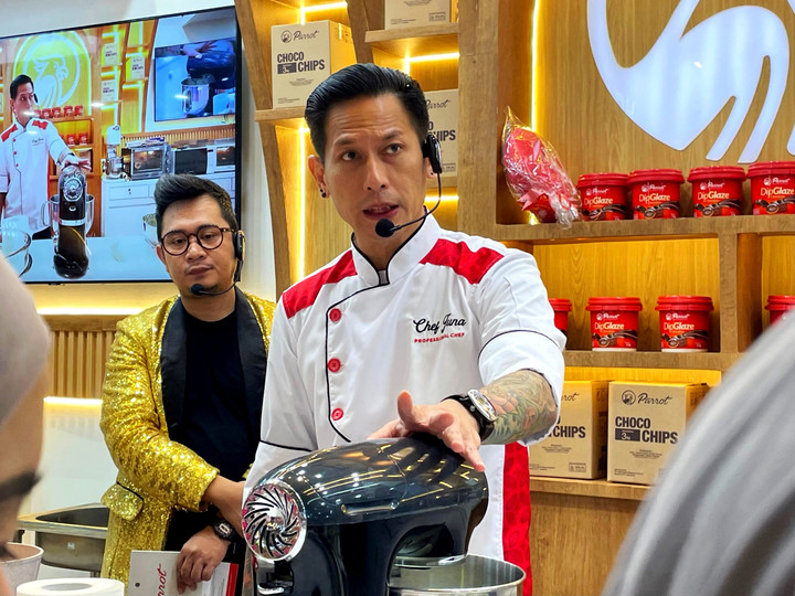 “Mencampurkan adonannya tidak boleh overwork, soalnya nanti antara bleber atau pas dipanggang malah jadi gak bagus,” jelas Chef Juna, saat acara demo cooking di booth Parrot SIAL InterFOOD 2025, Kamis (13/11).