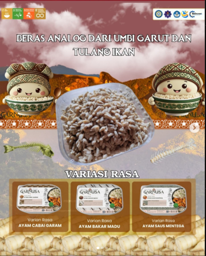 Dengan dukungan teknologi self-heating, produk inovatif ini nantinya bisa matang tanpa proses memasak, sehingga cocok untuk masyarakat modern yang menginginkan makanan praktis, sehat, dan ramah lingkungan. Terlebih lagi, GARNUSA dikemas menggunakan bahan biodegradable.