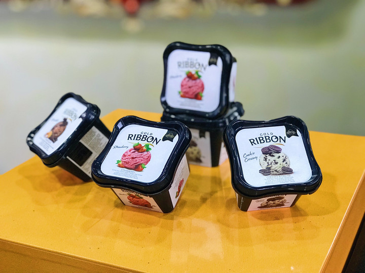 Gold Ribbon hadir dalam tiga varian dalam kemasan cup; chocolate, strawberry, dan cookies and cream.kumparanFOOD