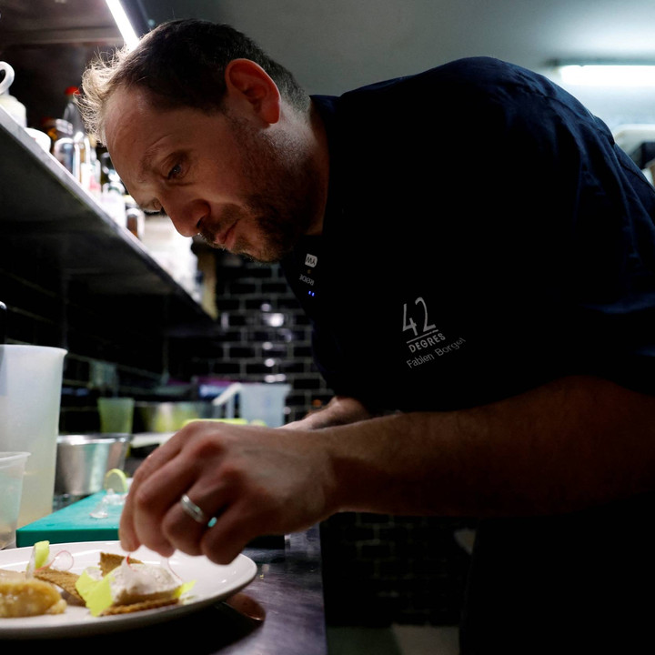 Koki Prancis Fabien Borgel, yang mengelola restoran vegan "42 Degres" di Paris, menciptakan hidangan bernama "faux gras" dua tahun lalu sebagai pengganti foie gras alias hati angsa.kumparanFOOD