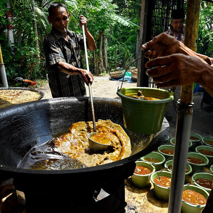 Memperingati Maulid Nabi Muhammad SAW, warga di Krueng Barona Jaya, Banda Aceh, memasak kuah beulangong untuk disantap bersama.kumparanFOOD
