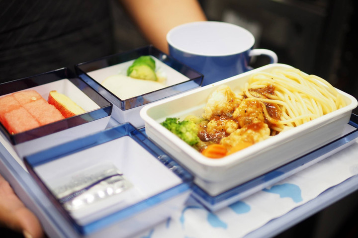 Melalui layanan ini, Jey disajikan hidangan bernama grilled mediterranean salad with prosciutto. Karena ragu dengan kata โprosciuttoโ, Jey sempat menanyakan kepada salah satu awak kabin. Ia curiga bahwa prosciutto mungkin mengacu pada bacon atau olahan babi. Akan tetapi, menurut Jey, awak kabin tersebut menjawab bahwa makanan itu bukan bacon dan aman untuk dikonsumsi.