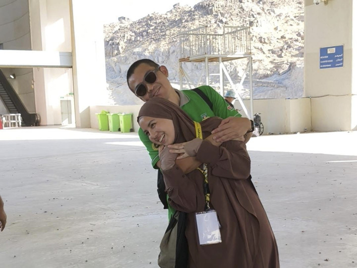 Senyum bahagia aktris Tya Ariestya terpancar usai menjalani rangkaian puncak haji di Arafah, Muzdalifah, dan Mina (Armuzna). Ia berangkat ke Tanah Suci bersama suaminya, Irfan Ratinggang.