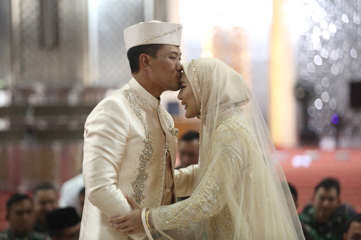 Pernikahan keduanya berlangsung di Masjid Istiqlal, Jakarta Pusat, Jumat (27/5). Prosesi akad nikah dimulai sekitar pukul 9.00 WIB.