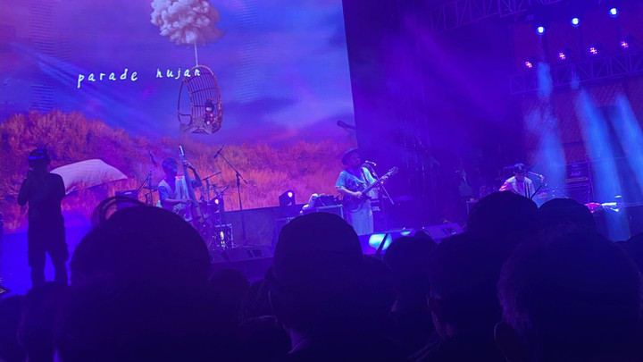 Situasi serupa terjadi saat Parade Hujan membawakan lagu Menuju Senja. Sejumlah penonton tampak bergoyang mengikuti alunan musik.